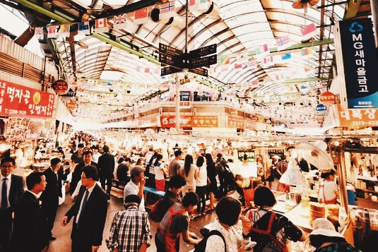"Dottegi" is a word from a Korean local dialect that refers to a bustling market, described as a place so busy and lively. The term originated from Busan's International Market during the Korean War, where military goods and imported goods were actively traded.