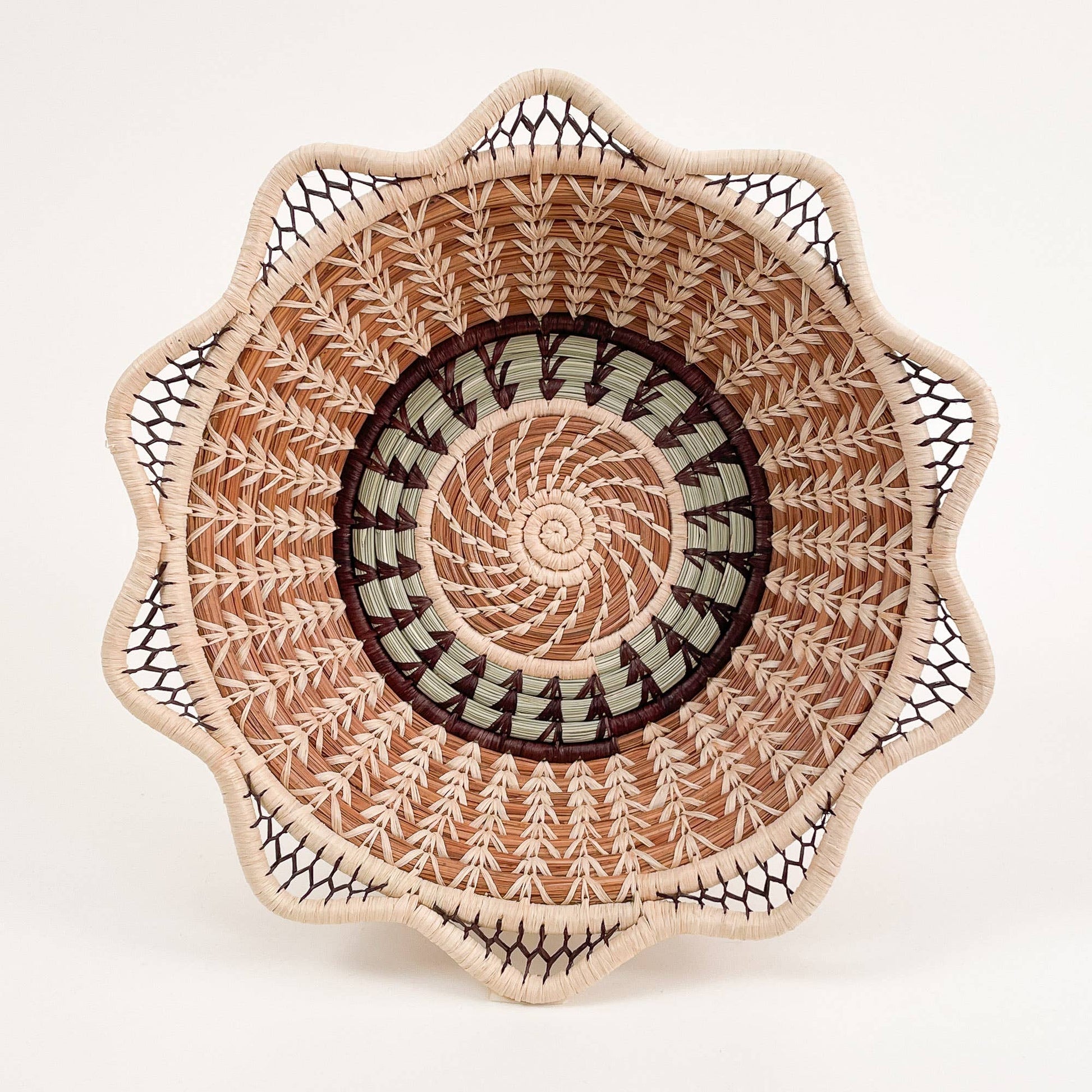 The Martina Basket showcases the artistry and tradition of Guatemalan craftsmanship. Handwoven from pajón—a native grass from the Guatemalan Highlands—and sustainably harvested longleaf pine needles, it’s beautifully accented with natural raffia for a refined finish. Created by the talented women of Mayan Hands’ El Triunfo cooperative, this versatile basket is perfect as a striking wall display or functional tabletop piece.